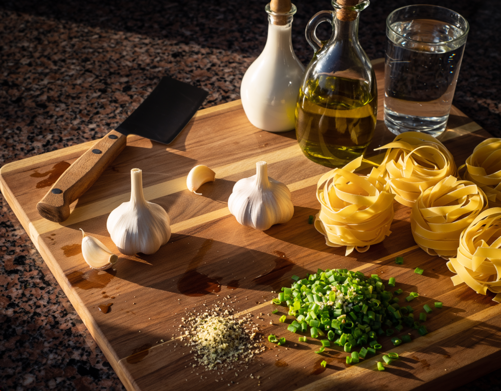 - Die Fettuccine nach Packungsanleitung abkochen.